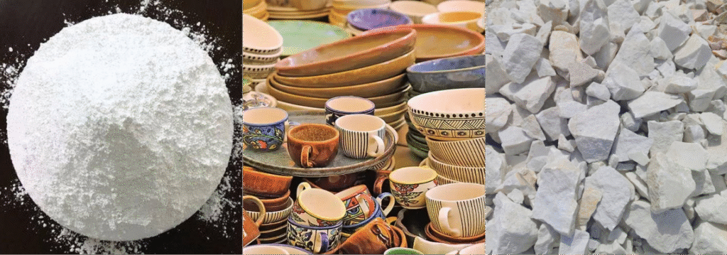 Calcite (Calcium Carbonate – CaCO₃) is a widely used mineral in the ceramic industry due to its functional properties. It enhances the performance, appearance, and durability of ceramic products such as tiles, sanitary ware, porcelain, and advanced ceramics. Its ability to improve whiteness, mechanical strength, and thermal stability makes it an essential ingredient in many formulations.